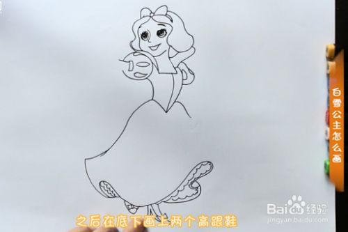 总结:小朋友在画白雪公主简笔画的时候,不要忘记画裙子上的褶皱了哦。