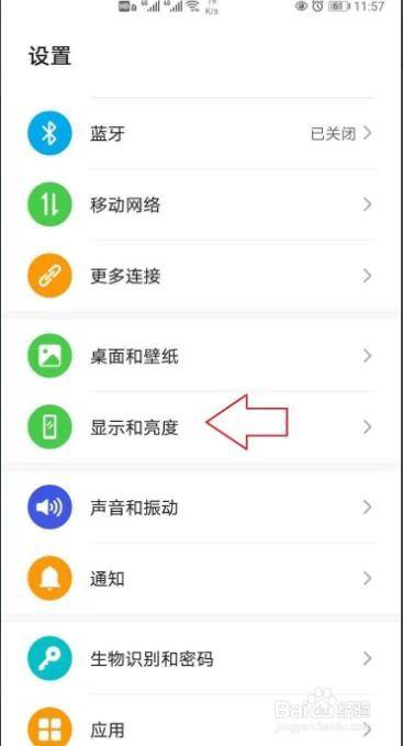 打开手机桌面,进入到【设置】,在显示的页面上,点击选择【显示和亮度】选项。