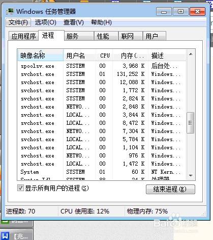 解决方案:1、打开任务管理器-进程-,找到游戏的进程(我不玩YY所以以别的进程作示例如下图)