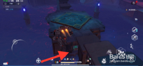 然后,前往左边的石梯,在凹坑处采集到第四个宝箱。