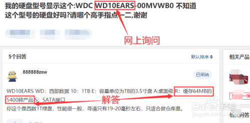 第三种方法:利用硬盘型号代码来识别,如自己不清楚代码代表什么意思,可网上救助于别人。见下图
