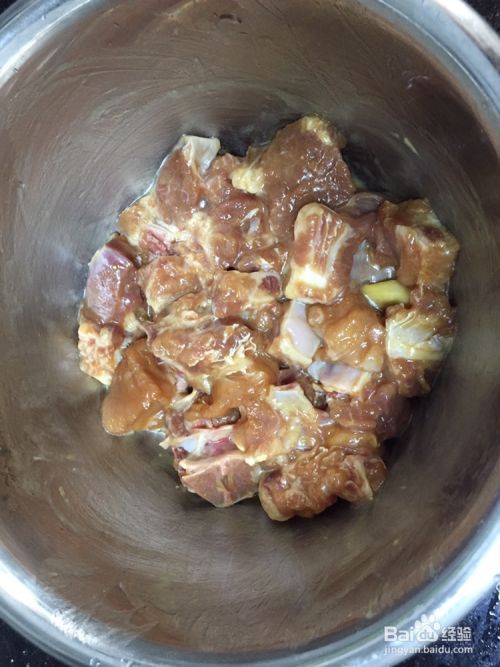 排骨沥干,加入少许盐、油、酱油、蚝油、胡椒粉,腌半小时左右。