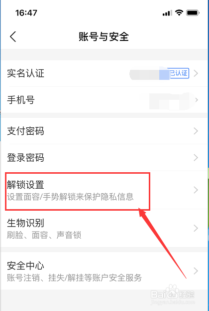 选择【启动支付宝】时,再根据自己选择解锁方式(面容方式解锁或者手势密码),然后设置好密码即可,如图所示。