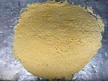 玉米面饵。为钓鱼者常用饵料,制作方法如下;取筛过的细玉米面50克、富强粉或八一面粉15一20克、食品黄(颜料店售)、白酒或蛐酒少许备用。