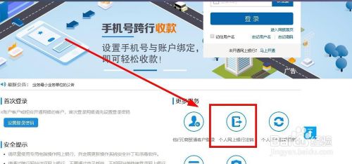 点击右栏账户登陆框下更多服务里的"个人网上银行注销"
