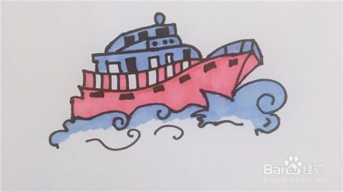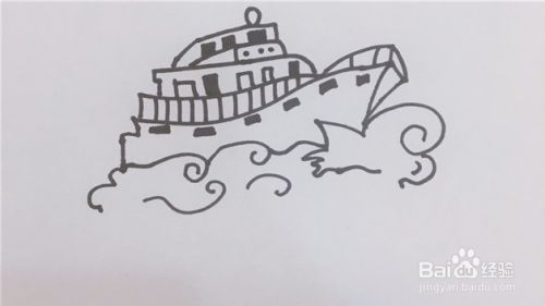 然后给游船画上窗户和波浪。