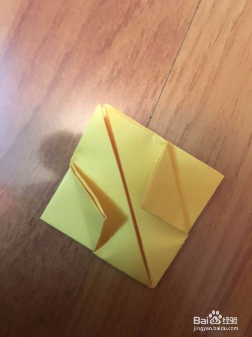 顶部的三角形的角弯折,塞进三角形的小口袋里。反面同样步骤