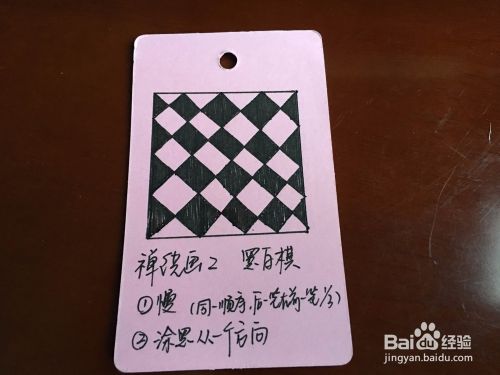 再比如禅绕画2黑白棋,先斜画线条,再垂直画线条,最后涂黑部分就可以了。注意一定要同一个方向涂黑哦!