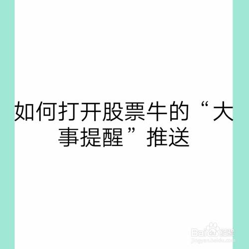 如何打开股票牛的“大事提醒”推送?这可能是很多喜欢股票牛的朋友们比较感兴趣的问题。那么应该如何解决这个问题呢?今天就与小编一起来共同探讨一下这个问题吧。