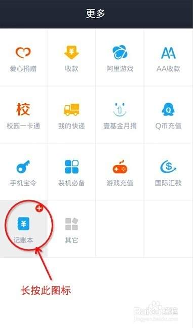 » 按手机的返回键,返回到支付宝首页可以看到已经添加的『记帐本』图标。