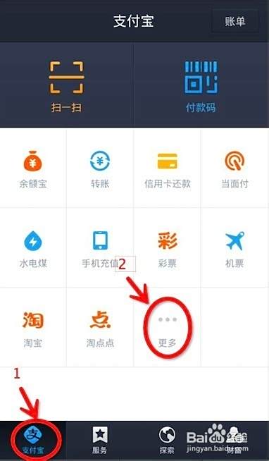 » 支付宝服务应用中,如果需要添加某应用(如:『记帐本』),点击『更多』,查看更多服务应用。