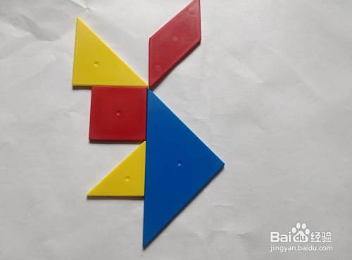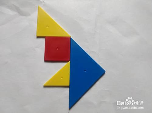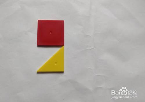放上正方形,下面放上黄色小三角形挨着,右端一齐,如图。