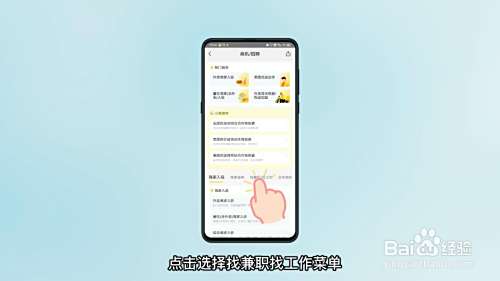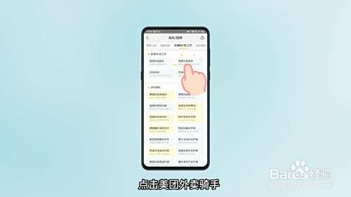 在显示的页面上,找到推荐工具,点击选择【商机/招聘】。点击选择【找兼职/找工作】菜单。点击【美团外卖骑手】。