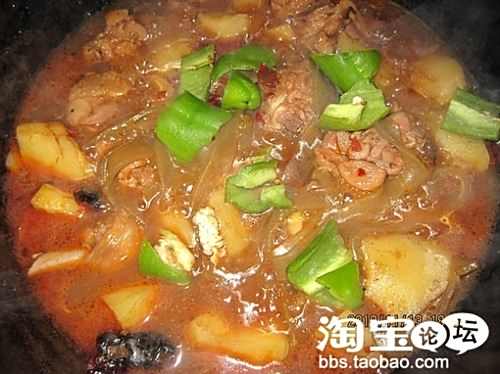 主料:鸡大腿肉:500g 土豆:250g<br>辅料:青尖椒:50g 红辣椒:50g 粉条:50g<br>调料:大葱 10克 姜 10克 大蒜 10克 植物油 75克 白砂糖 郫县豆瓣酱 适量 酱油,食盐,花椒粉,耗油适量