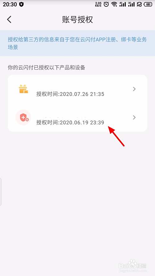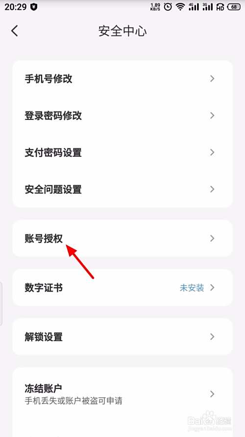 在安全中心页面,点击 账号授权;