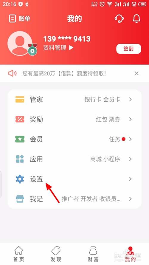 在我的页面,点击 设置;