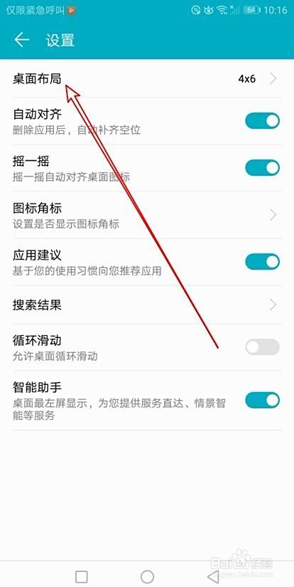 在打开的华为手机桌面设置页面中,我们点击“桌面布局”的设置项。