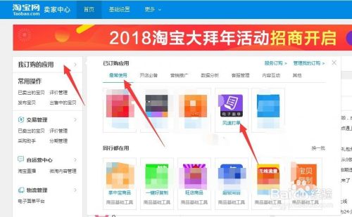 需要打印的淘宝店铺在服务市场进行软件订购并打开软件