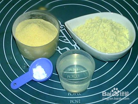 配料:玉米粉80克,大豆粉40克,开水72克,小苏打1克