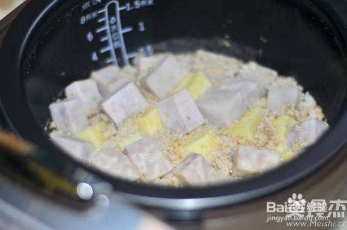 3加入少许水。(芋头、红薯不是特别吸水,不需要加太多水)