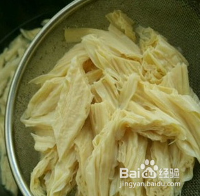 腐竹从锅中捞出来,放入盆中过冷水,让它快速的降温。