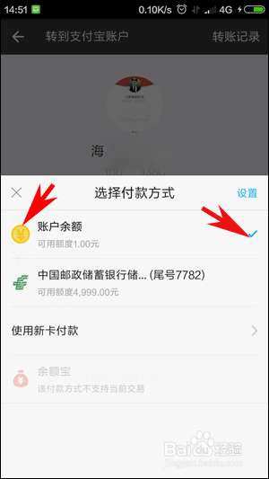 选择我们想用的转账方式并点击,后面就会出来√,表示更改成功。
