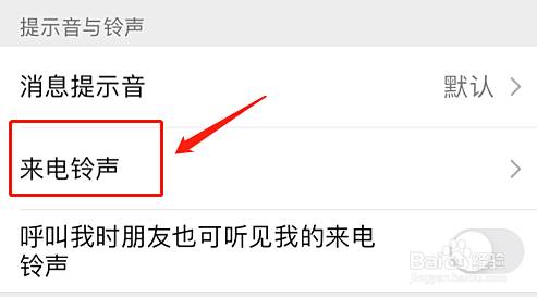 在“提示音与铃声”模块中,点击“来电铃声”,如图所示。