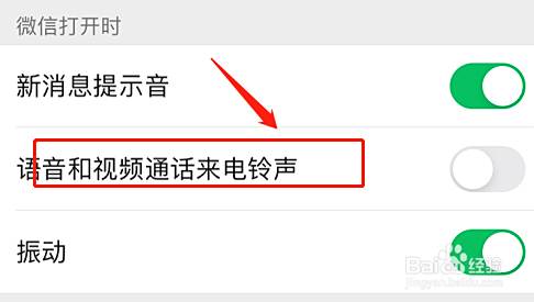 进入页面后,点击“语音和视频通话来电铃声”对应的开关按钮后,变成绿色的开关按钮,如图所示。
