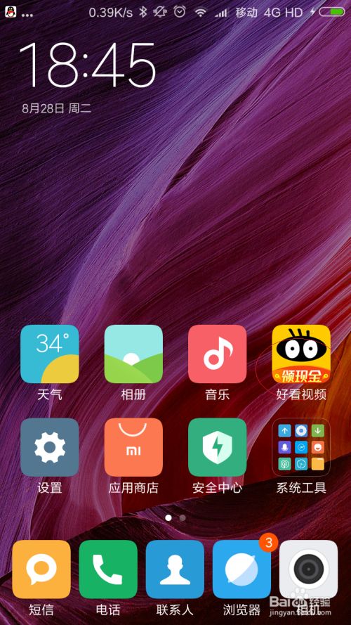 启动智能手机系统,如图所示。唤出用户主界面,点击"好看视频"图标。