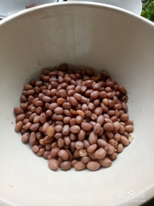 将煮熟的花生捞在盆里。