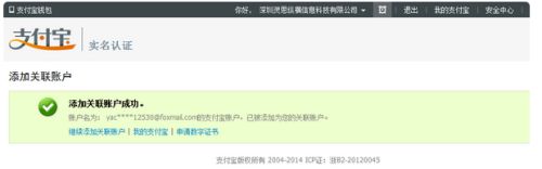 10、关联成功。至此企业支付宝主帐号已经成功关联子帐号。