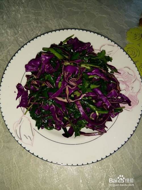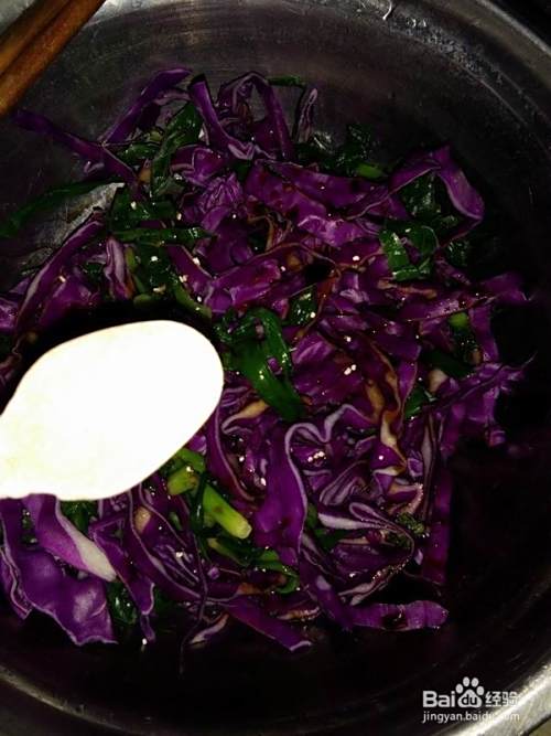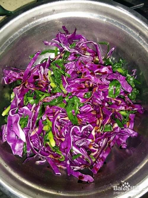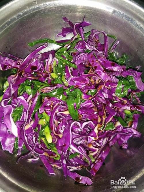紫甘蓝切丝,待韭菜凉后放入一起拌匀。
