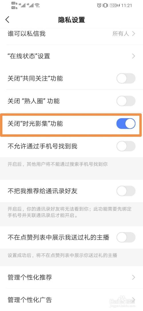 最后点击【关闭时光影集功能】白色按钮,开启即可。