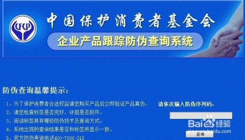 方法二:点击打开中国保护消费者基金会企业产品跟踪防伪查询系统网站,网站左上方有一个防伪查询,输入防伪编码点击查询。