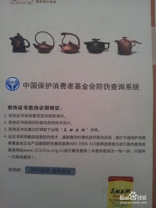方法一:刮开涂层会有一串数字编码,拨打防伪电话查询根据提示音进入防伪查询系统,输入数字编码,系统会告知订购的产品为灵动五洲青奥紫砂组壶