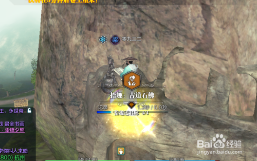 来到坐标位置,看到山中间石佛吗?跳上去捡取吧