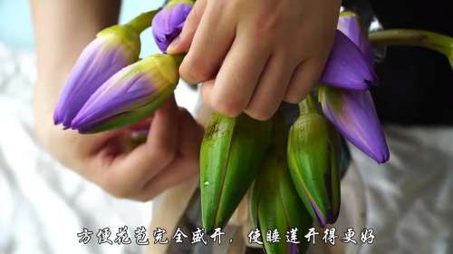 6一瓣一瓣小心地剥去花苞最外层的花萼方便花苞完全盛开,使睡莲开得更好。
