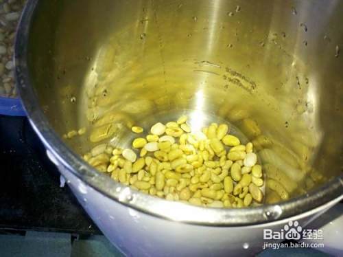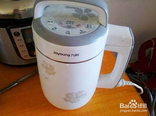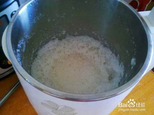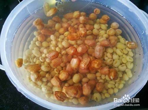 泡好的豆子放入豆浆机中,放入花生会更香。放刻度之内的水位