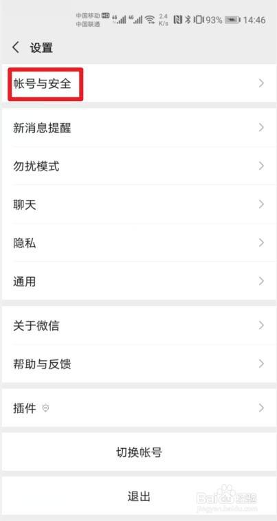 进入设置界面后再点击【帐号与安全】。