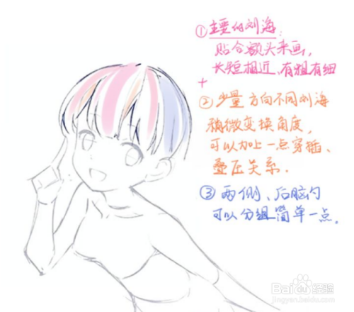 首先我们可以把画好头发分为两个部分来看:结构层次+效果层次。而这两个部分基本也可以跟我们的作画步骤对应起来也就是画线稿时安排结构,在上色刻画时加强效果。