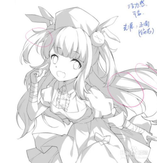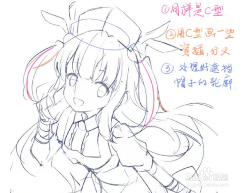 基本用草稿安排好头发的结构之后,细化一下把线稿确定。