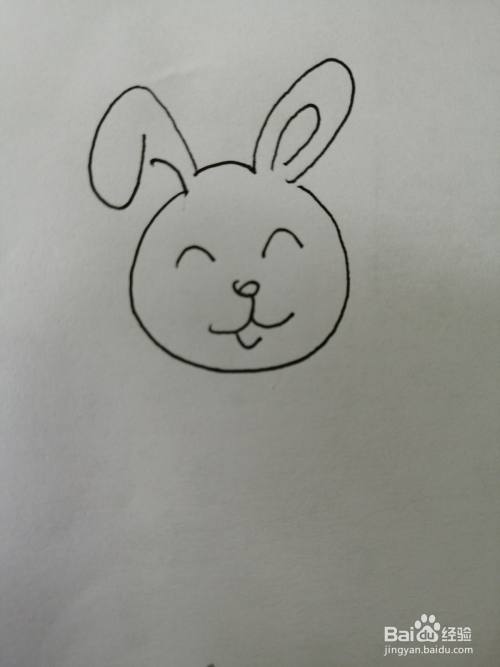 第四步,接着继续画出可爱的小兔子的鼻子和微笑的小嘴巴。