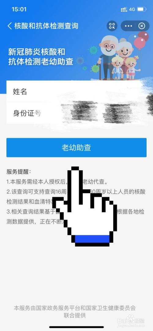 输入要查询的身份证号和姓名后点击下方蓝色字体【老幼助查】即可查出核酸检测结果了