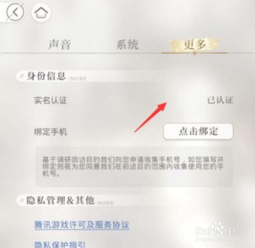 最后即可看见实名认证选项,注意实名认证无法修攀亲改,除非重新创舍蹲信建披虚账号,重新认证。