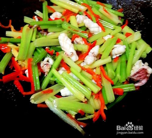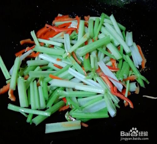 用余油来炒芹菜,也需要大火爆炒一分钟。