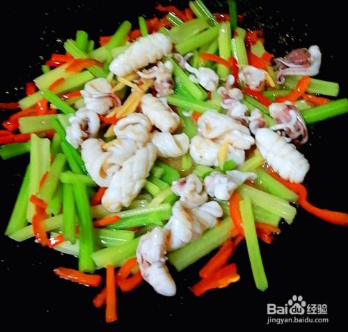 芹菜炒鱿鱼是一道营养丰富,味道鲜美的家常菜,芹菜含有丰富的粗纤维,还有降血压的功效,鱿鱼含有丰富的蛋白质等多种营养成份,深受大家的喜爱。