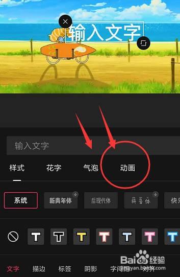 输入文字内容,在下方类型栏中选择右侧的动画选项设置