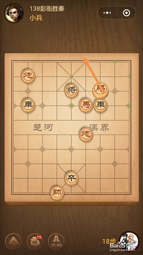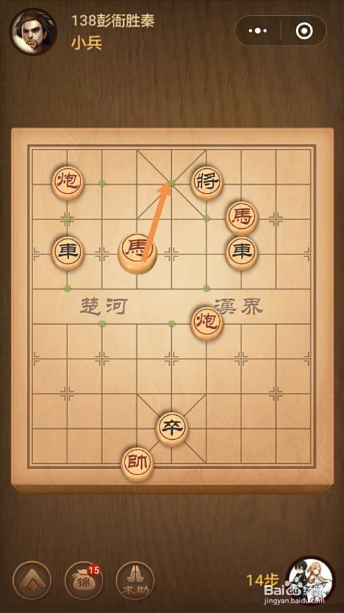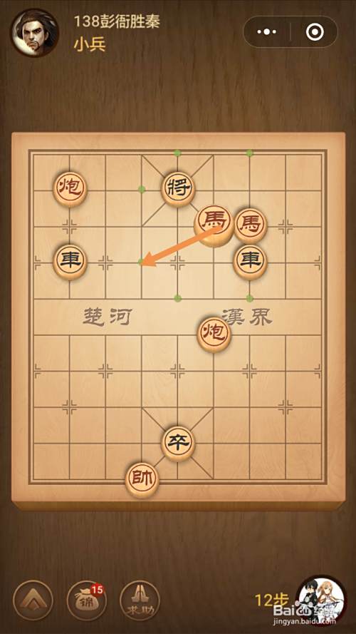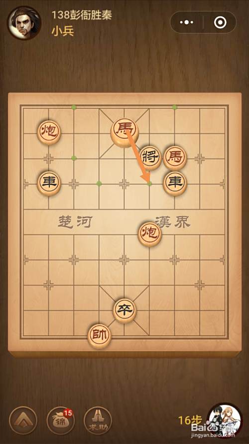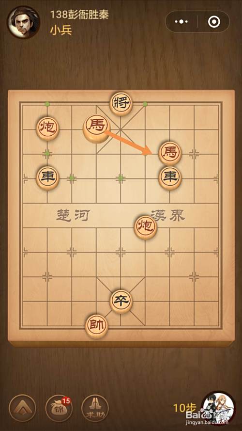 第十步馬移动到下图中箭头标注的位置就过关了。