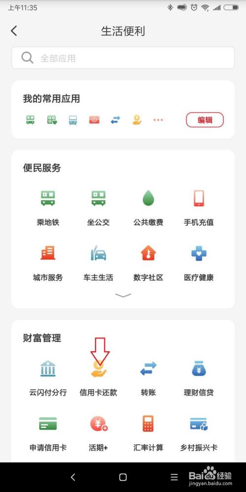 进入,下拉找到图标;信用卡还款,进入新的页面。