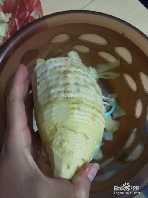 把切好的蒜放入烧热的油中,油七分热就放入竹笋